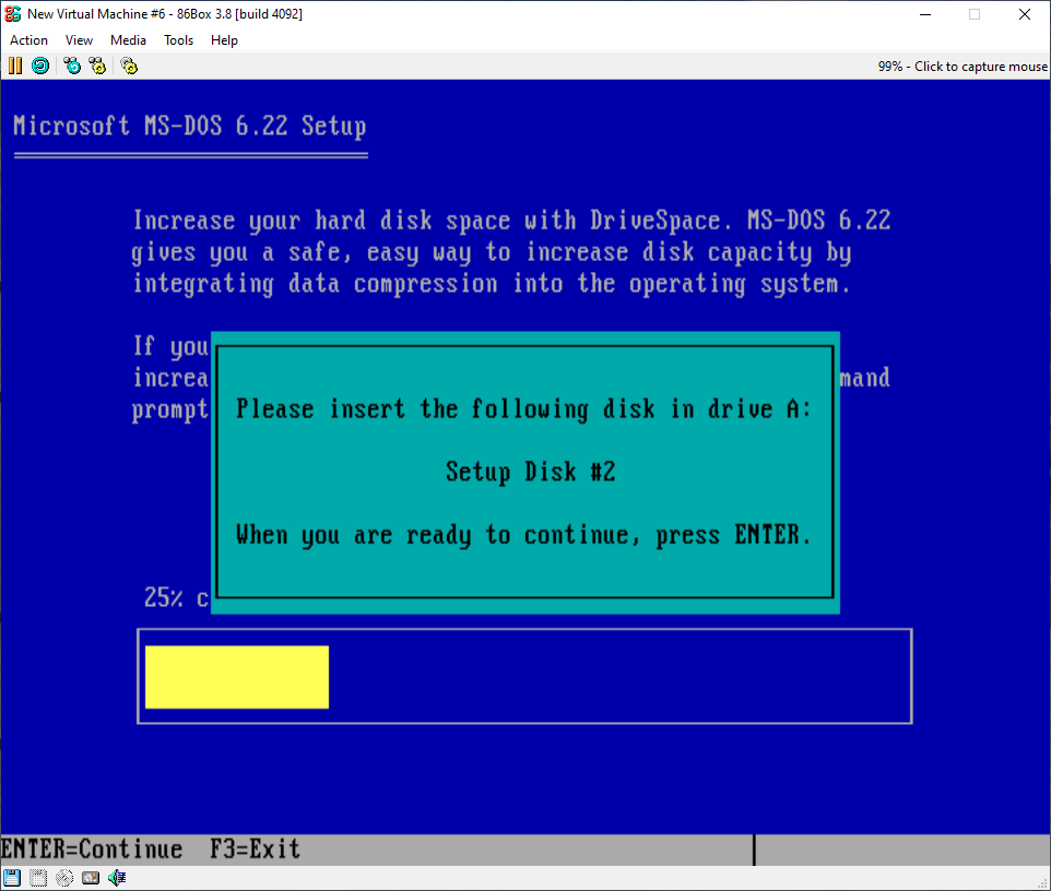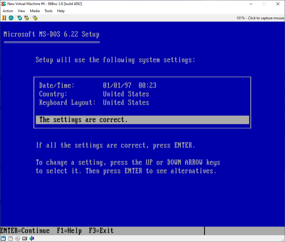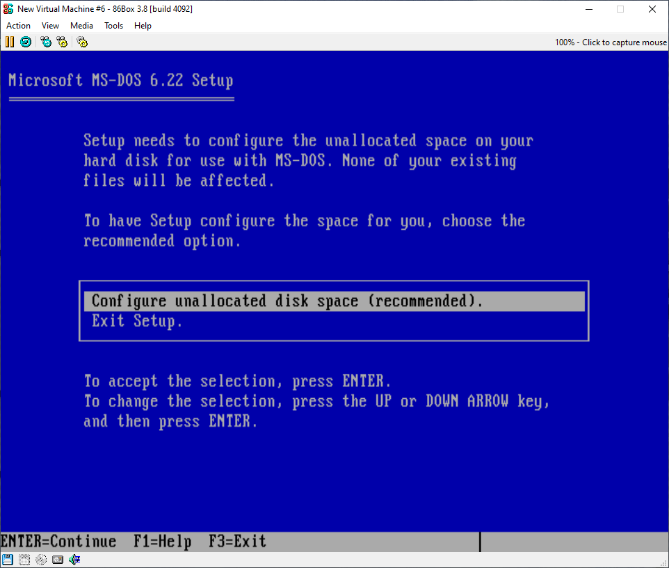 You should be greeted with a blue screen that welcomes you to the set-up. If you are new to MS-DOS, you should read the text on the welcome screen before proceeding.