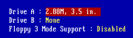 At this screen it should show the primary master hard disk we configured just before and now we just need to do the floppy disks. Use the arrow keys to make your way down to “Drive A” and use the page up or page down button until “Drive A” is set to 2.88M, 3.5 in.