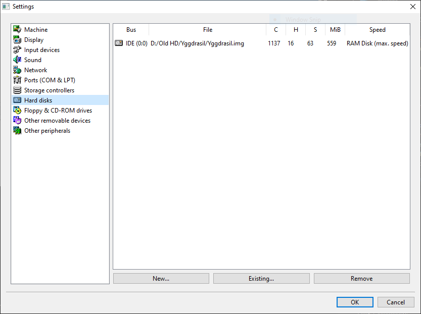 For me personally I make 560MB hard disks to install every package but you do not have to do this so you can do your own size if desired, but set the bus for the hard disk to IDE and ID to 0:0. The image format should be .img. Depending on the version of 86box you have it may ask for the hard disk speed. Just select max for it. If you do not have enough space you may choose to do a smaller size.