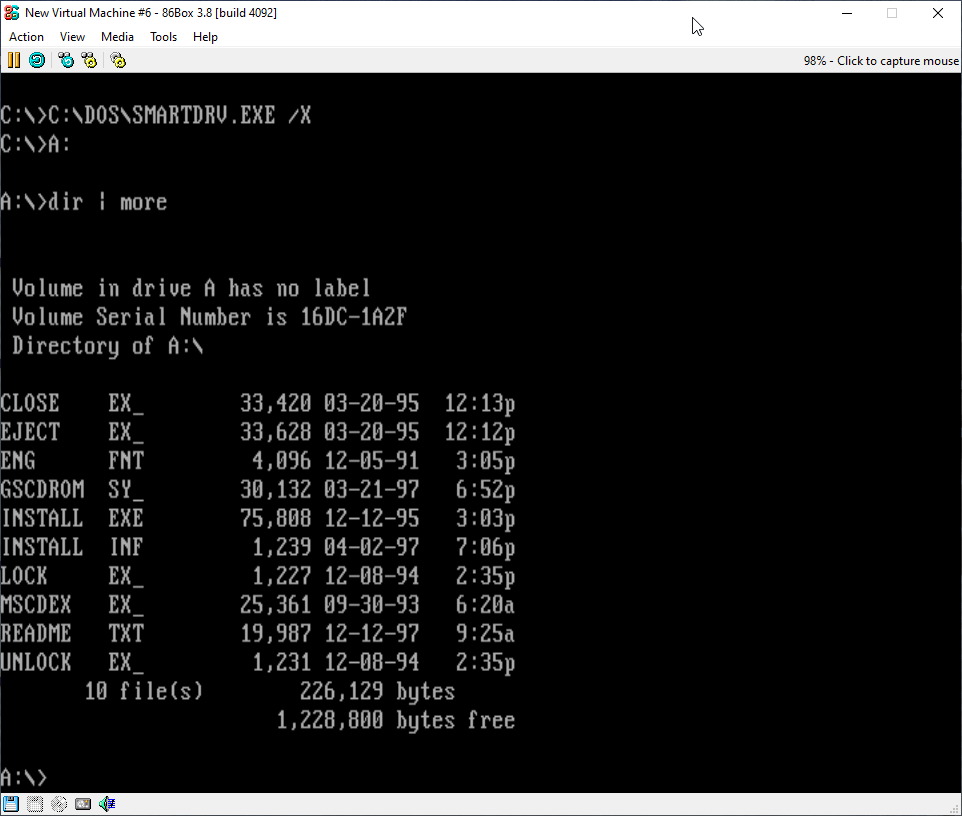 Now the CD-ROM driver. You can grab one from the internet archive from here. Once downloaded, head back to 86box and load the floppy to install the drivers into the emulated machine.
