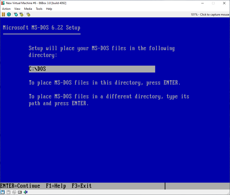 Next, it says where it will install the MS-DOS files and here, I just go with the default directory.
