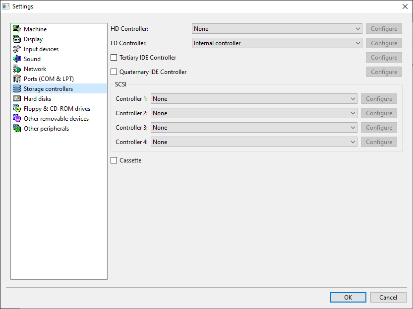 If this is your first time using 86box, double check that the FD Controller is set to the internal cotroller